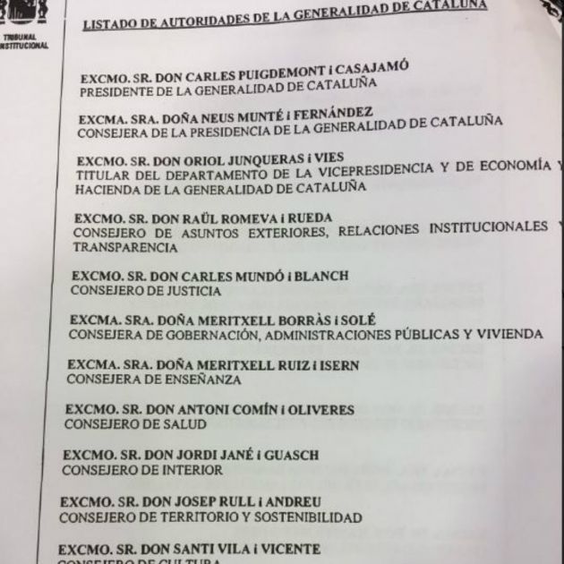 Un segundo error es el trato protocolario al president y a los consellers, donde el TC se vuelve a equivocar. En todos los casos habla de "excelentísimo", cuando en el caso del president debería decir "muy honorable" y para los consellers sería "honorable".