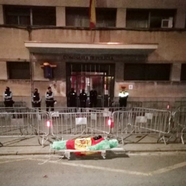 El CDR de Sabadell ha prendido fuego esta noche a lo que simulaba una réplica de los restos del dictador Francisco Franco, ante la comisaría de la policía española en Sabadell (Vallès Occidental).