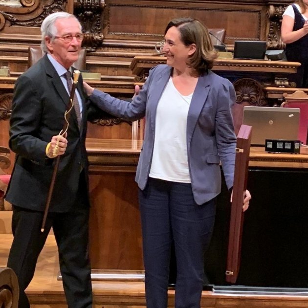 El exalcalde de Barcelona y líder del PDeCAT en el Ayuntamiento, Xavier Trias, ha recibido este jueves la vara de mando de honor de manos de la alcaldesa en funciones, Ada Colau, una distinción que se entrega a los alcaldes cuando dejan el consistorio. El resto de concejales lo ha celebrado en pie y con un gran aplauso.