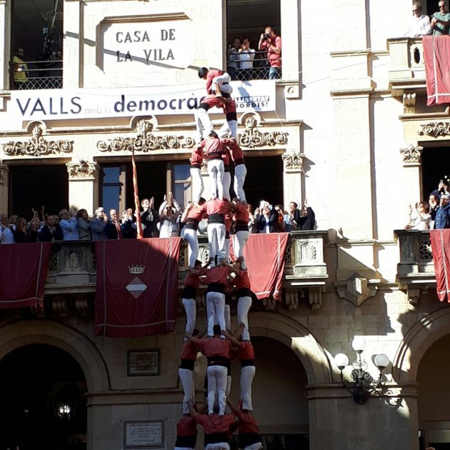La diada ha sido larga: más de tres horas, en este caso, no tanto por el sistema de rondas de Valls, sino por el exceso de peus desmontados, intentos e intentos desmontados. Cuando se llevan a plaça castells de esta envergadura, la paciencia es un requisito indispensable. Lo que también ha demostrado la actuación de hoy es que empezar a las 12.30h es posible, incluso sin tener que hacer muchos retoques en el programa de fiestas: a las 12.27h se ha hecho el lanzamiento de la moneda y todo estaba a punto.