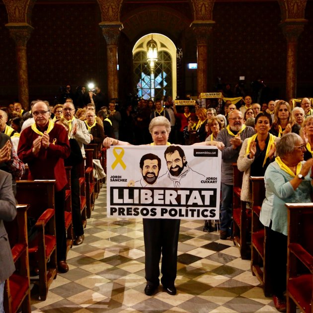 Entre los parlamentos, se ha dejado un espacio especial para dar voz a las familias de Sànchez y Cuixart, a través de sus esposas. La pareja de Sànchez, Susana Barreda, ha pedido no olvidar que "en prisiones españolas está nuestra gente". "Si la gente les no olvida, ellos tendrán fuerza".
