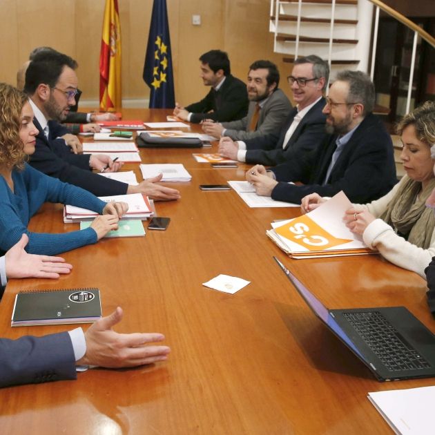El plan de gobierno del PSOE hace acercar posiciones a Podemos y Ciudadanos. Hoy a las 16 h se han vuelto a reunir los equipos negociadores de Pedro Sánchez y Albert Rivera para trabajar sobre el acuerdo de investidura del secretario general del Partido Socialista. Del encuentro, en C's destacan que "hay espacio para el acuerdo", a pesar de que la reunión ha sido "general", y que la próxima semana volverán a reunirse para negociar "sectorialmente". Ahora bien, la aprobación parcial sobre el acuerdo también es el mensaje de Izquierda Unida (IU), Compromís y los morados.