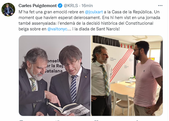 Puigdemont también ha querido destacar la última victoria del independentismo: que el Tribunal Constitucional de Bélgica haya tumbado la ley de injurias en la Corona en el país, a raíz del caso por la extradición del rapero Valtònyc.