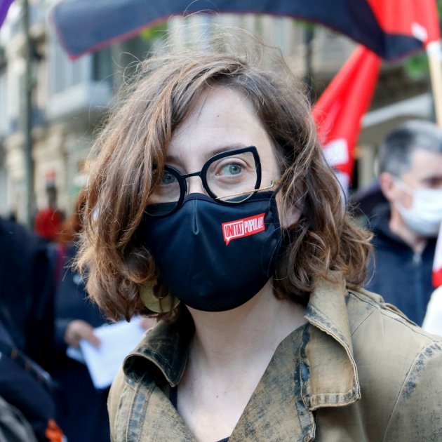 Imagen principal, la diputada de la CUP Eulàlia Reguant antes de la concentración del sindicalismo alternativo en el Passeig de Gràcia / ACN