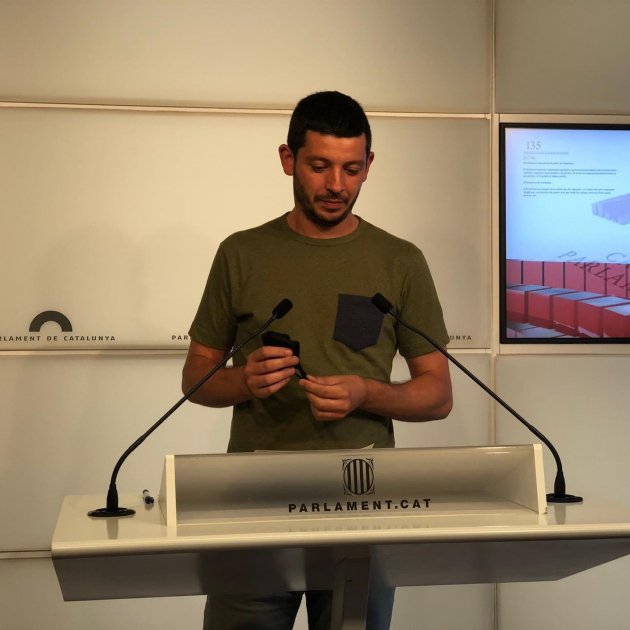 Imagen principal: Xavier Pellicer, diputado de la CUP, en una rueda de prensa en el Parlament. Europa Press.