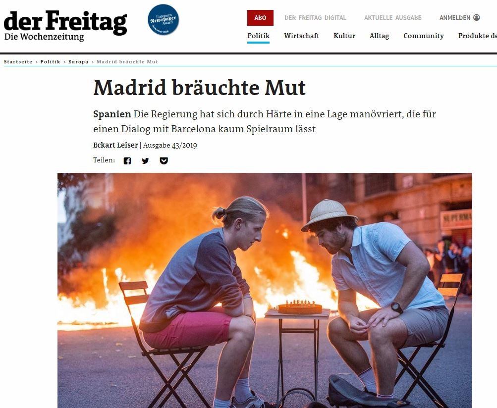 En un reportaje titulado precisamente "Madrid tendría que ser valiente", en alusión a la Moncloa, la publicación critica que el Gobierno español "se haya movido en un escenario dificultoso, que en la práctica deja poco espacio para el diálogo con Barcelona."