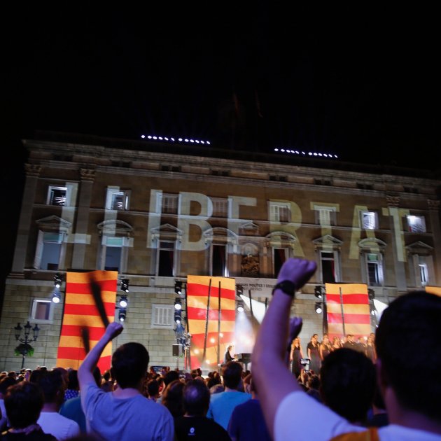 Los presos políticos y los exiliados han protagonizado el acto central de la celebración institucional de la Diada, que este año se ha celebrado en la plaça Sant Jaume. Ha sido un acto reivindicativo y muy emotivo que se ha abierto con las hijas de Quim Forn y Jordi Turull y el sobrino de Jordi Cuixart recibiendo sobre el escenario la flama del Canigó que el president, Quim Torra, ha llevado desde el Parlament. "No estáis solos", han coreado los presentes antes de que el nieto de Pompeu Fabra leyera la definición de Libertad. A partir de aquí la palabra libertad ha sido el eje de la celebración, y las fotografías de los presos y la voz de los exiliados se han ido sucediendo junto con imágenes de la represión contra el 1-O.