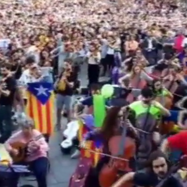 Más de 2.000 músicos y cantantes han interpretado esta noche varias canciones tradicionales en la plaça de la Catedral de Barcelona, en un emotivo gesto de apoyo al referéndum del 1 de Octubre. También han aprovechado para criticar la represión policial.