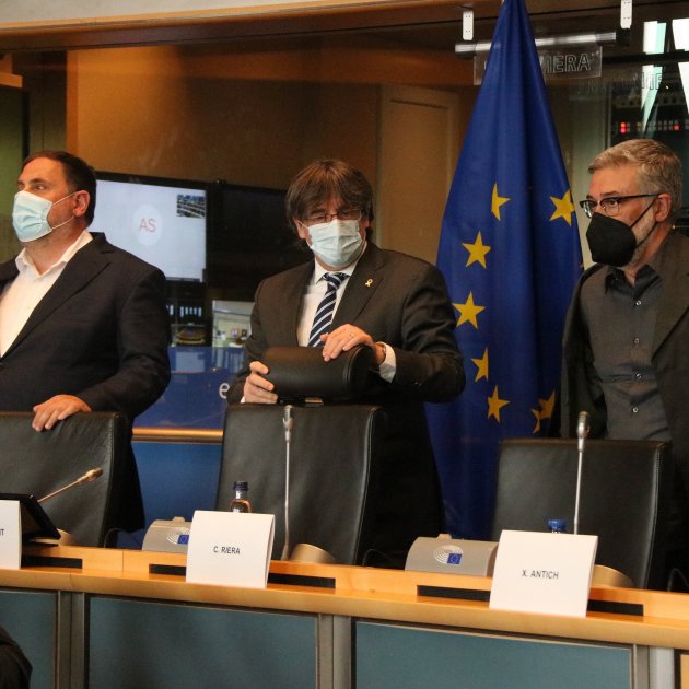 Mensaje compartido del independentismo. Cinco representantes de alto nivel han acudido hoy al Parlamento Europeo para ofrecer una rueda de prensa conjunta. El encuentro del presidente de Junts, Carles Puigdemont; el presidente de ERC, Oriol Junqueras, y el diputado de la CUP Carles Riera, además de los presidentes de la Assemblea Nacional Catalana, Elisenda Paluzie, y de Òmnium Cultural, Xavier Antich, ha reunido a decenas de medios de comunicación y oyentes. Con todo, después de que se haya destapado el mayor caso de ciberespionaje: al menos 65 personas vinculadas al entorno independentista han sido espiadas a través de su teléfono móvil gracias, principalmente, al programa Pegasus y también con Candiru.
