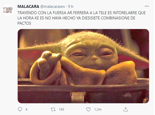 Es evidente que la tensión está en el ambiente y que todo el mundo quiere resolver la incógnita de cómo quedará la Asamblea de la Comunidad de Madrid. Y por eso algunos tuiteros han escogido invocar las mejores mentes del país para salir de dudas. Vaya, las mejores o las más televisivas. Almenos en el caso de MALACARA, que han decidido utilizar la fuerza del universo para saber que piensa Antonio García Ferreras.