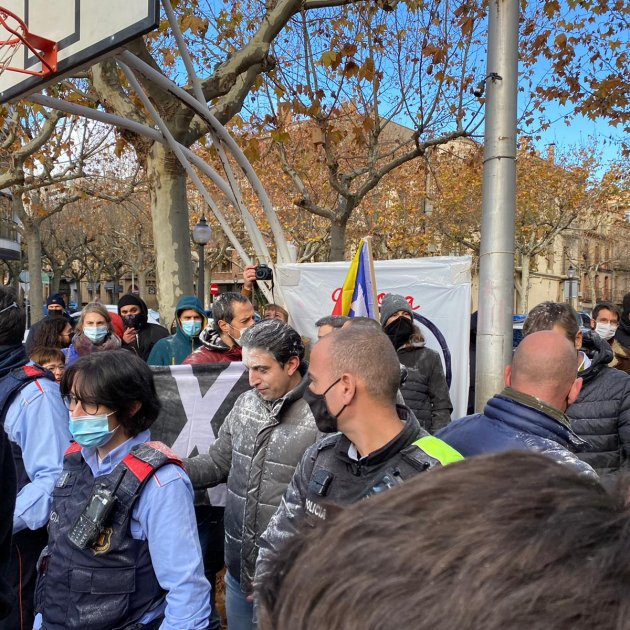 Como consecuencia de la protesta de los manifestantes antifascistas, los militantes de Vox han tenido que permanecer toda la mañana, hasta la una y media del mediodía, hora en que se les acababa el permiso para montar la carpa, arrinconados e inmóviles. De fondo, los manifestantes, muchos de ellos equipados con esteladas, cantaban 'Els Segadors' y gritaban consignas como 'Fora feixistes dels nostres pobles" o "Els carrers seran sempre nostres".