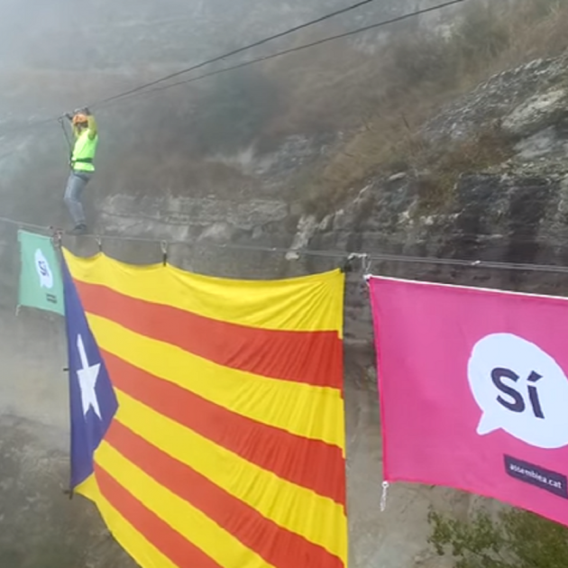 Con esta acción, el Centre Excursionista de Centelles ha querido rememorar tiempos pasados: en el año 1988 ya se colgó una estelada gigante en Puigsagordi.