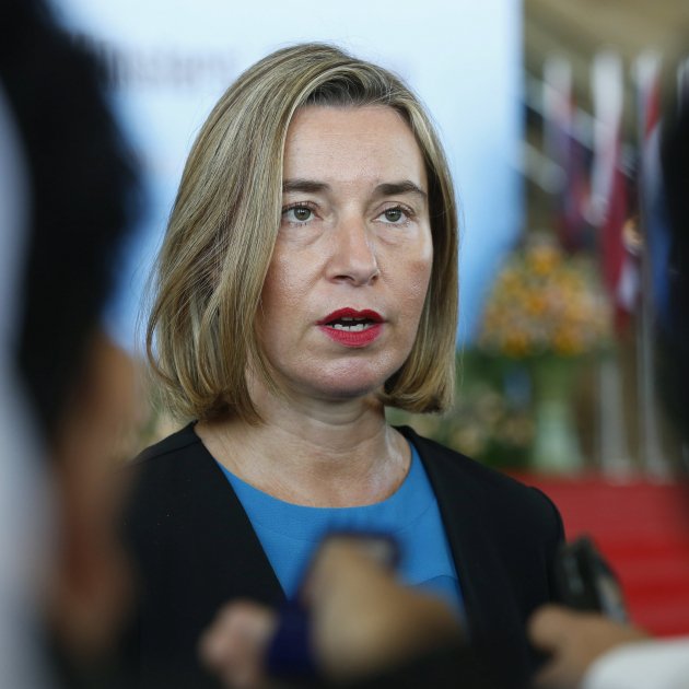 Federica Mogherini (Roma, 1973), del Partido Democrático italiano, fue alta representante de la Unión para Asuntos Exteriores y Política de Seguridad desde el 1 de diciembre de 2014 al 30 de noviembre de 2019, con Donald Tusk, presidente al Consejo de Europeo, y Jean-Claude Juncker, de la Comisión Europea. Antes, fue ministra de Asuntos Exteriores y de Cooperación en la República Italiana, de febrero a octubre del 2014.