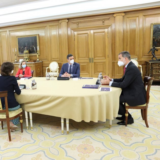 Una fuerte polémica ha estallado en Madrid a raíz de la visita que el presidente español, Pedro Sánchez, ha realizado a Felipe VI en la Zarzuela para presentarle las líneas básicas del plan de recuperación. También han acudido las vicepresidentas Carmen Calvo, Nadia Calviño, Yolanda Díaz y Teresa Ribera. En el denominado off, que las televisiones aprovechan para captar imágenes antes del encuentro formal, el monarca ha estado hablando en términos elogiosos de las medidas de apertura después de la pandemia, como también lo han hecho los representantes del Gobierno. Todo eso sólo tres días después de las elecciones de Madrid. "Madrid ha sido una liberación", se ha entendido inicialmente que soltaba al monarca, en unas imágenes en bruto que ha difundido la Zarzuela, y eso ha corrido cómo la pólvora.