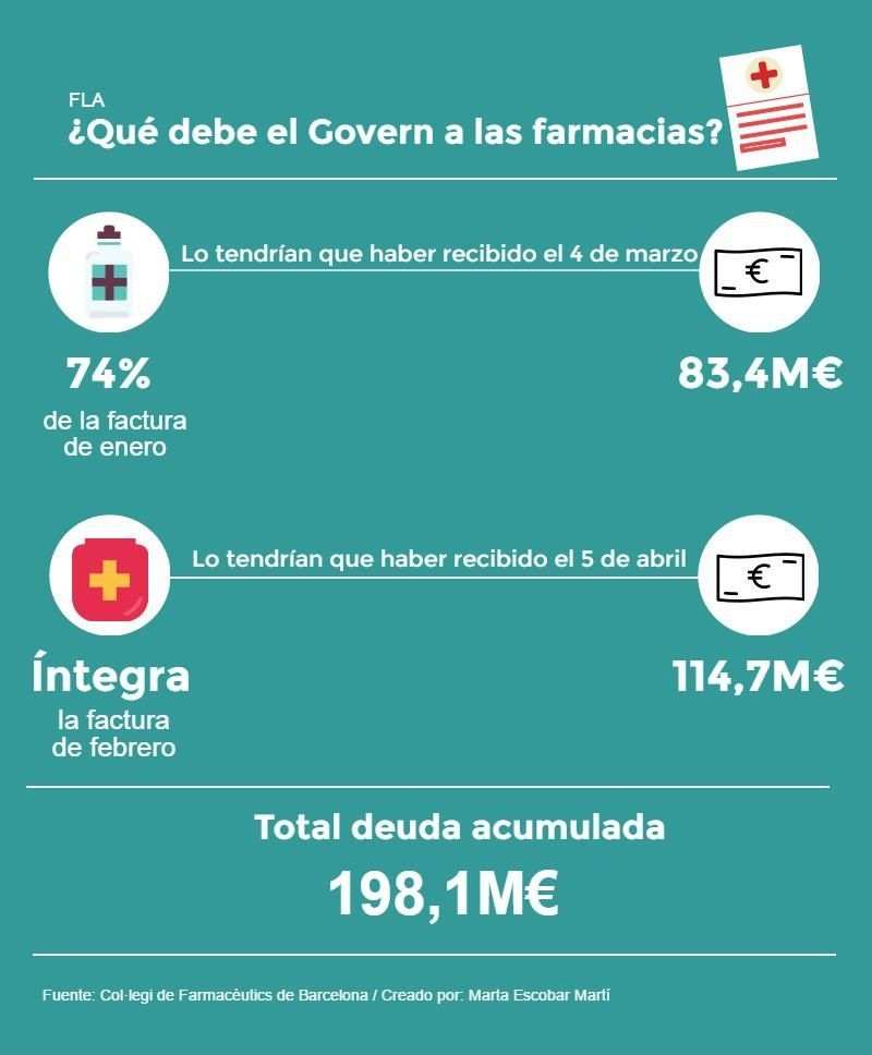 Con eso, el Govern acumula ya 198,1 millones de euros de deuda a los farmacéuticos, tal como indica el Colegio de Farmacéuticos de Barcelona, que ha aprovechado para reclamar a las administraciones que establezcan un calendario de pagos "estable" y "presupuestando de acuerdo con el gasto real farmacéutico".