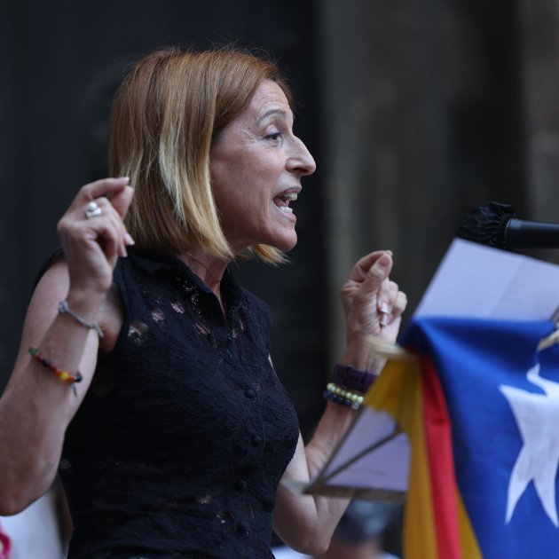 Imagen principal: Carme Forcadell, durante su intervención en el acto de la plaza del Rey / Foto: Sergi Alcàzar