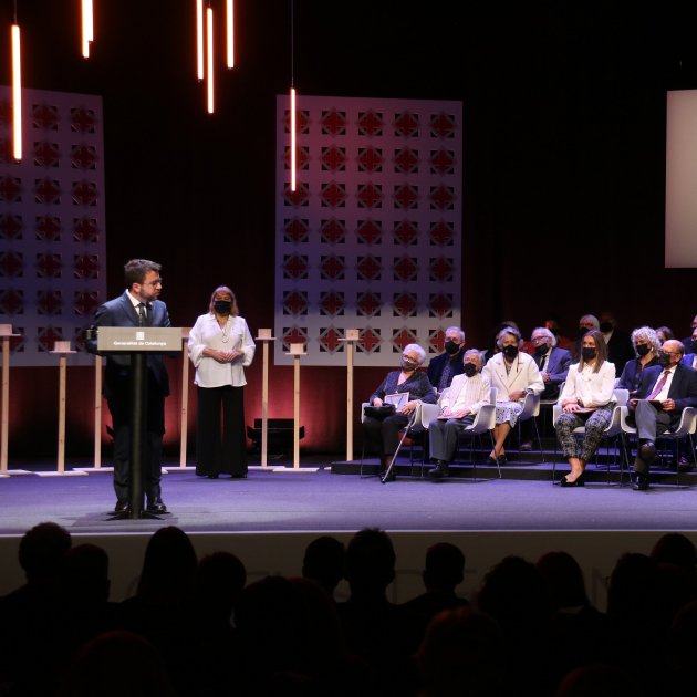 Asimismo ha dirigido unas palabras a los galardonados, de quienes ha destacado que son referentes para la ciudadanía catalana y para las próximas generaciones, por lo cual les ha agradecido su compromiso por hacer a un país más justo, próspero, verde, y con más igualdad: "Sin ningún tipo de duda hoy entregamos estas Creus de Sant Jordi porque hoy Catalunya es un país mejor gracias a vosotros y a vuestro legado. ¡Gracias y viva Catalunya libre"! ha cerrado Aragonès.