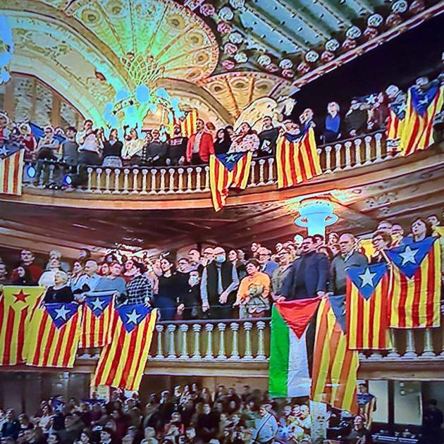 El concierto, que ha sido retransmitido en directo por TV3, ha servido para visibilizar nuevamente las demandas a favor de la independencia de Catalunya por parte de personas del público del Palau de la Música Catalana, que sostenía esteladas mientras gritaba "Visca Catalunya lliure" e "Independència". Aparte de las esteladas, también se han exhibido algunas banderas palestinas en solidaridad con el pueblo palestino ante la guerra desatada por Israel contra Hamás y que ha dejado la Franja de Gaza devastada. En las redes sociales, los gritos han sido resaltados por algunos usuarios que han opinado que la emisión se ha cortado pronto para dar paso al discurso del presidente de la Generalitat, Salvador Illa.