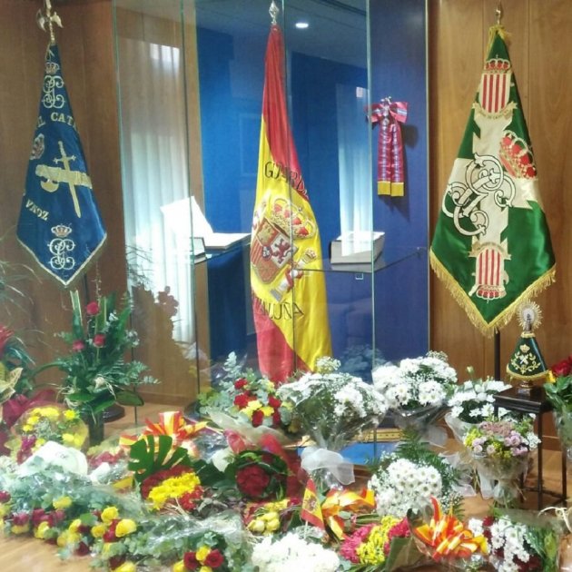 La Guardia Civil en Catalunya ha rechazado durante las últimas semanas los claveles que manifestantes independentistas les han ofrecido en sus acciones de registro, una actitud que contrasta con la información que este mismo sábado ha difundido el Ministerio del Interior, que ha dado a conocer que la sede de la VII Zona de la Guardia Civil en Barcelona -el cuartel de la Travessera de Gràcia- ha aceptado ramos de flores, eso sí, engalanados con banderas españolas.