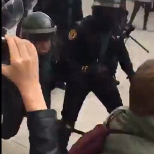 La guàrdia civil carrega contra els estudiants concentrats davant de l'@ielesvinyes #1oct pic.twitter.com/kwUvHK13Ek