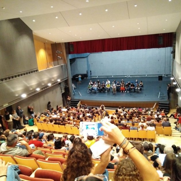 A pesar de los problemas, los dos observadores han participado esta noche en un acto por la defensa de los derechos civiles y la democracia en el Institut del Teatre, momento que muestra la imagen.