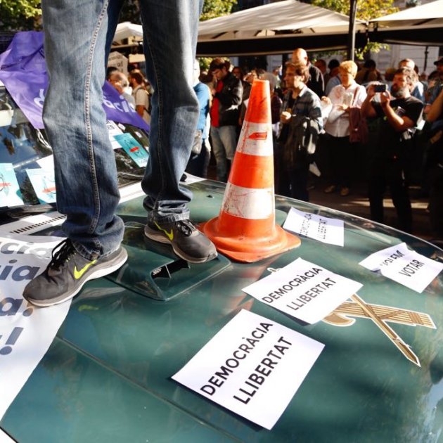 La denuncia, presentada el pasado lunes y recogida por varios medios, dice lo siguiente: "Entre los presuntos autores de un delito de daños se encuentra un reportero de la televisión autonómica catalana, TV3, llamado Iván Medina Ramos, el cual, mientras informaba en directo sobre la concentración delante de la Conselleria d'Economia en el programa de televisión Tarda Oberta de la referida cadena, decidió subirse encima del capó de un vehículo de la Guardia Civil y comenzar a saltar sobre el mismo, causando daños muy graves a este".
