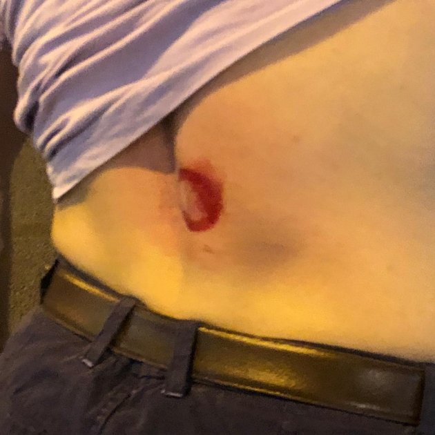 Entre los heridos hay un hombre que pasaba por la calle Balmes y se ha encontrado con el enfrentamiento entre los manifestantes ultras y los Mossos d'Esquadra. La policía le ha disparado por la espalda un proyectil de foam mientras se escondía en un quiosco de venta de cupones de la ONCE. ElNacional.cat ha recogido su testigo.