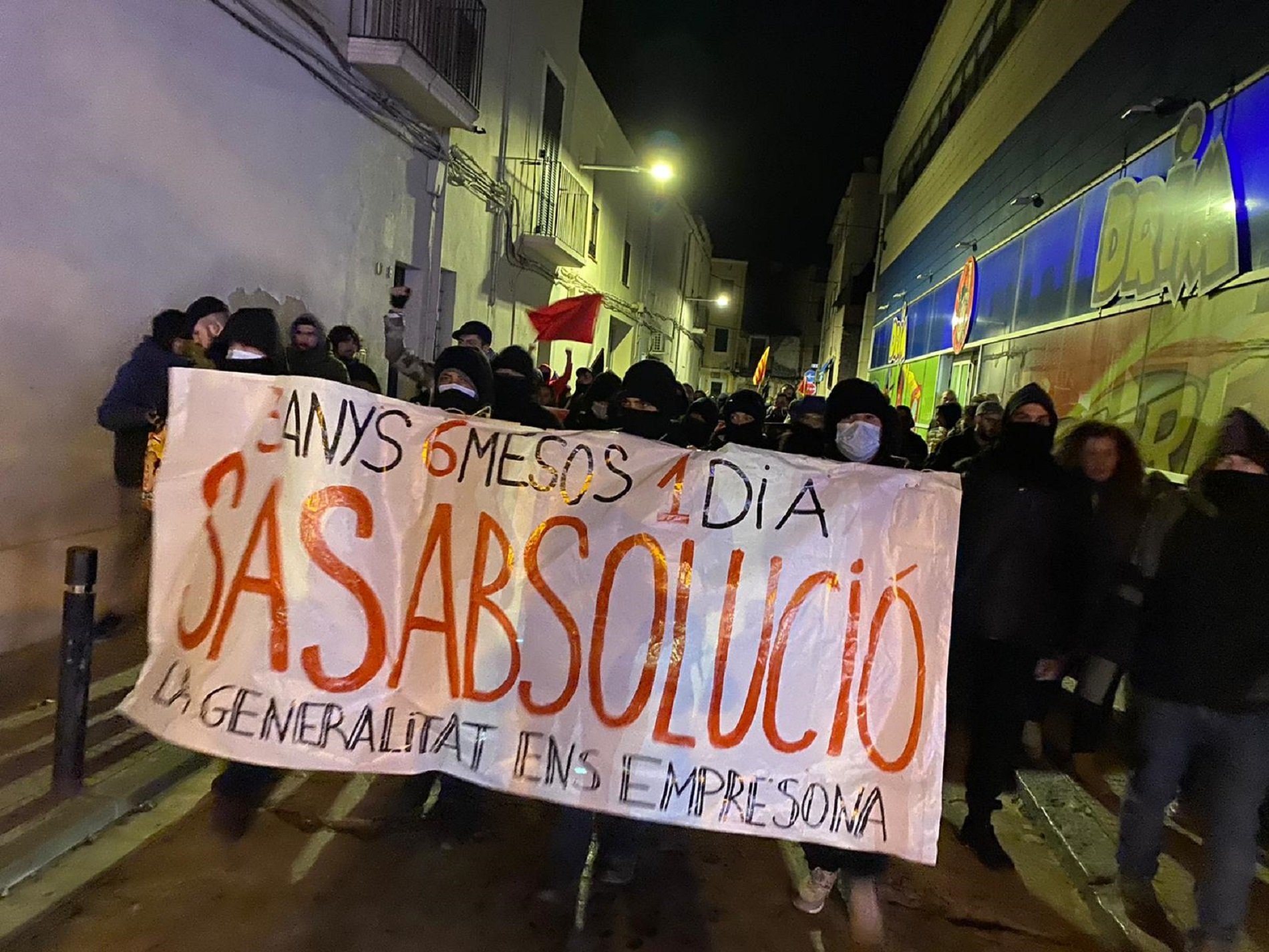 Una vez finalizado el acto, los manifestantes han llenado las calles con pancartas de apoyo al activista independentista y, después de incendiar al menos un contenedor, se han acercado a la comisaría de los Mossos d'Esquadra. En un punto muy tenso de la noche, los Mossos han llegado a apuntar a los manifestantes con pistolas de foam. Escasos minutos después, sin embargo, las barricadas se han disuelto.