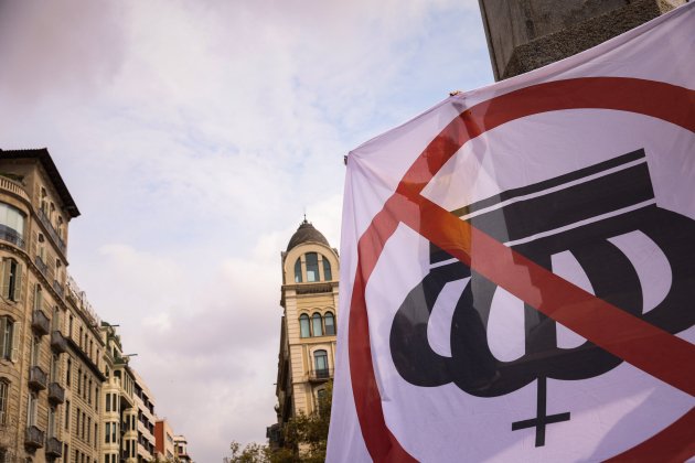 Una bandera contra la monarquía a la manifestación del 3-O / Sergi Alcàzar
