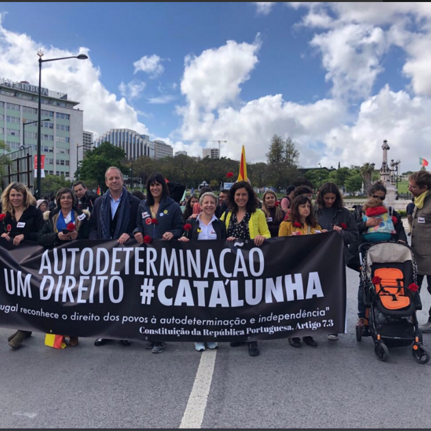 Avui ens manifestem al costat dl poble portugués per reivindicar el #Dretautodeterminació !!! Portugal reconeix el dret a l’autodeterminació a l’article 7.3 d la Constitució portuguesa des d 1975. #25deAbril #PelaLiberdade !! 🌹🌹✊🏽✊🏽 pic.twitter.com/RxSjWJ0h4U