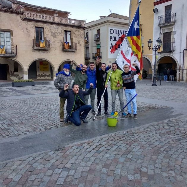 Después de la fugaz visita de Cs a Amer, que paseó sus 36 diputados del Parlament por la plaza del pueblo bajo el grito unánime que reivindicaba a Carles Puigdemont como president, algunos vecinos llevaron a cabo una ingeniosa acción. Cargados con un cubo de detergente y un palo de fregar, algunos habitantes del municipio gerundense empezaron a fregar la plaza que horas antes habían pisado los parlamentarios naranjas.