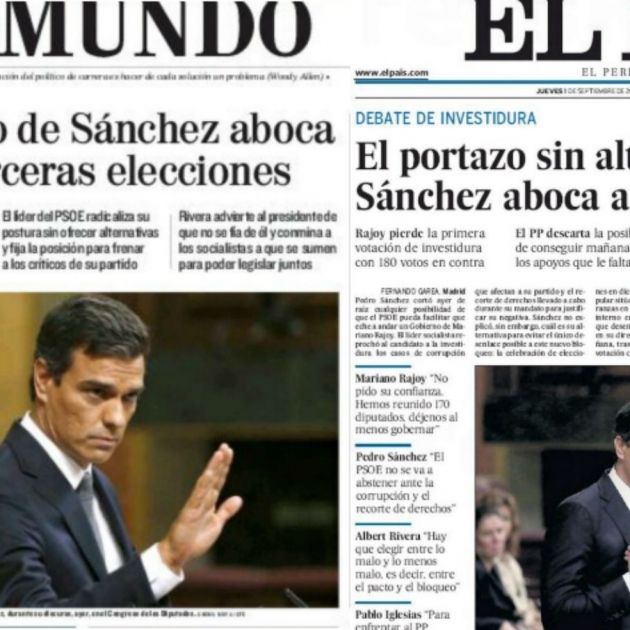 "El portazo de Sánchez aboca a unas terceras elecciones" o "el portazo sin alternativa de Sánchez aboca a unas terceras elecciones". Se trata de dos titulares de dos medios bien diferentes –el primero El Mundo, el segundo El País– que, prácticamente con las mismas palabras, alertan sobre el bloqueo socialista para formar gobierno en España.