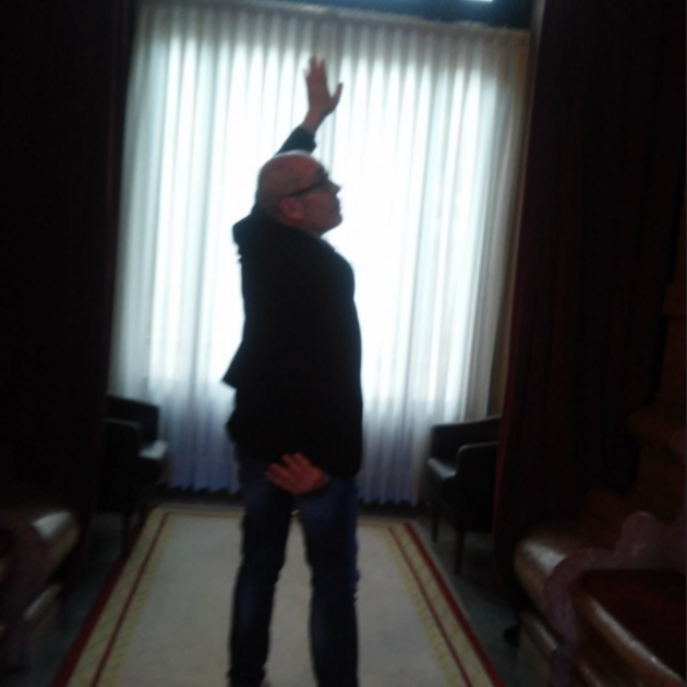 Los periodistas Iu Forn y Empar Moliner han imitado las fotografías que se hizo la presidenta de Cs en el Parlament, Inés Arrimadas, en el mismo lugar donde ser las hizo en la sede del legislativo catalán.