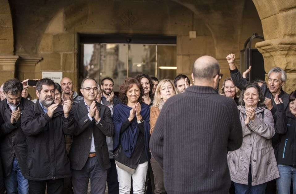 La comparecencia del concejal de Vic Joan Coma para explicitar su voluntad de desobedecer a la Audiencia Nacional ha reunido ante el Ayuntamiento de la localidad a una treintena de representantes del soberanismo catalán. Alcaldes, concejales y diputados de Junts pel Sí, PDCat, ERC, comunes y CUP y líderes de las entidades de la sociedad civil se han reunido delante del Ayuntamiento.