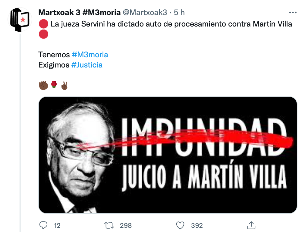 Según ha adelantado la asociación vasca Martxoak 3 de memoria histórica, la jueza Servini ha dictado este sábado el auto de procesamiento por cuatro homicidios durante la transición.