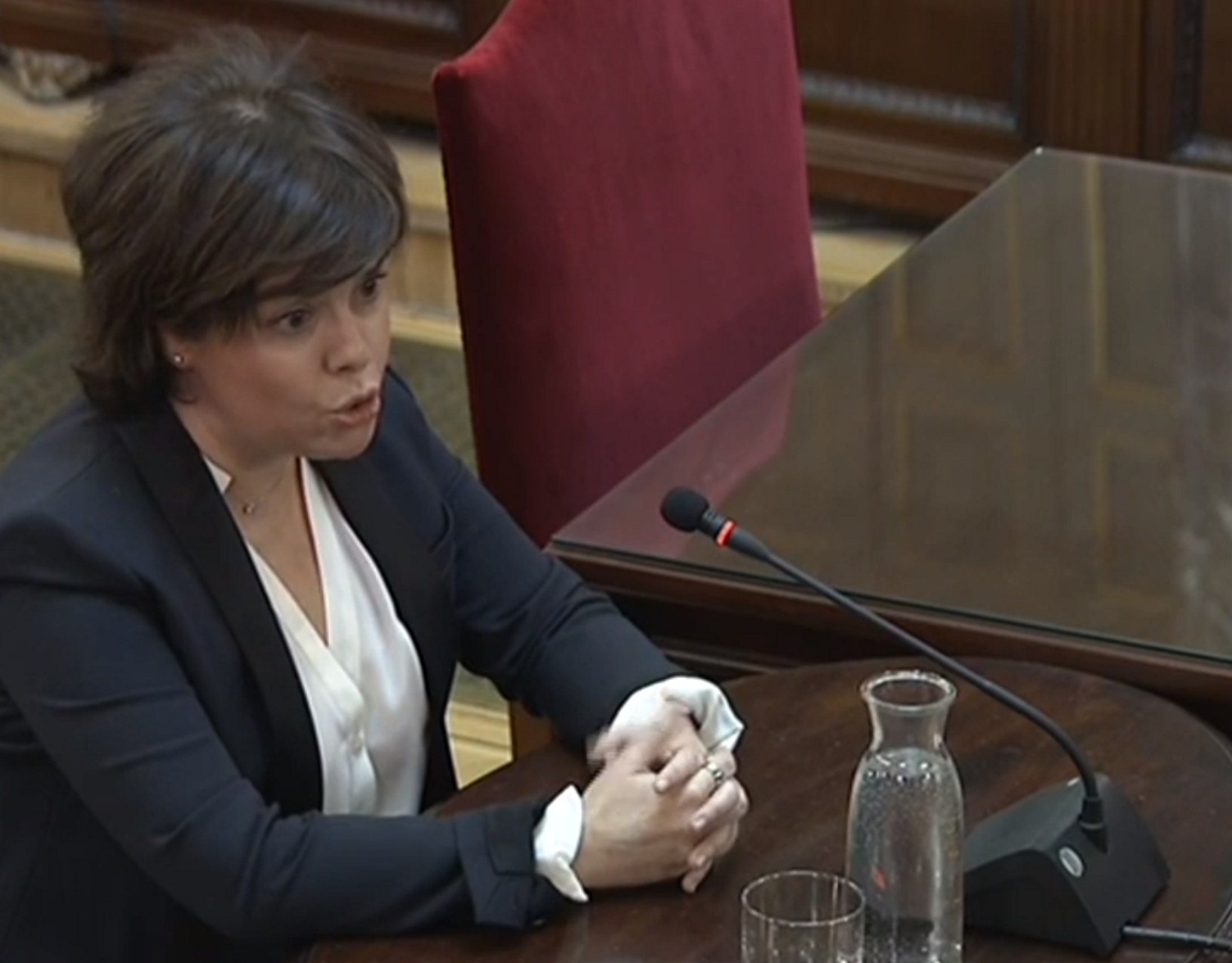 "Nos encontrábamos con que en cada actuación judicial había multitudes creando imágenes violentas". Así ha entrado la violencia en el juicio al procés. Por boca de la exvicepresidenta del gobierno de Mariano Rajoy. Con todo, no ha concretado ni acreditado ni un solo acto violento. Sólo ha dicho que "considera un acto violento" la manifestación de delante de la Conselleria d'Economia el 20-S.