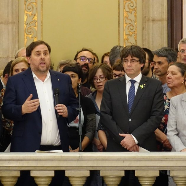 En su discurso ante las escaleras principales de la cámara catalana, y ante la presencia de más de 500 alcaldes de todo el país, Oriol Junqueras se ha querido dirigir también a los ciudadanos que pueden tener inquietudes en este momento. "Nosotros actuamos de buena fe, con respeto y estima", ha dicho. Les ha querido transmitir confianza en los "retos de presente y futuro", y ha recordado que la proclamación de la nueva república se enmarca en los valores universales.