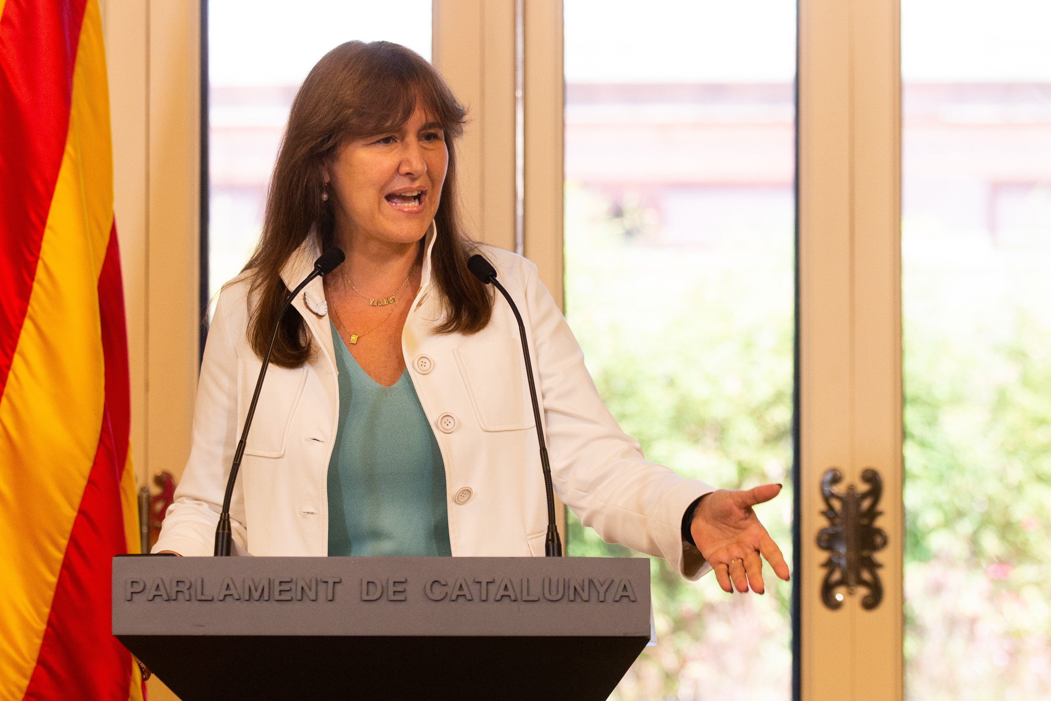 El órgano de gobierno de la Cámara ha dejado finalmente la decisión en manos de los grupos. No obstante, en la rueda de prensa convocada esta tarde por Junts en el Parlament, la portavoz, Mònica Sales, ha evitado aclarar si su grupo está dispuesto a impulsar la reforma del reglamento para eliminar este punto.