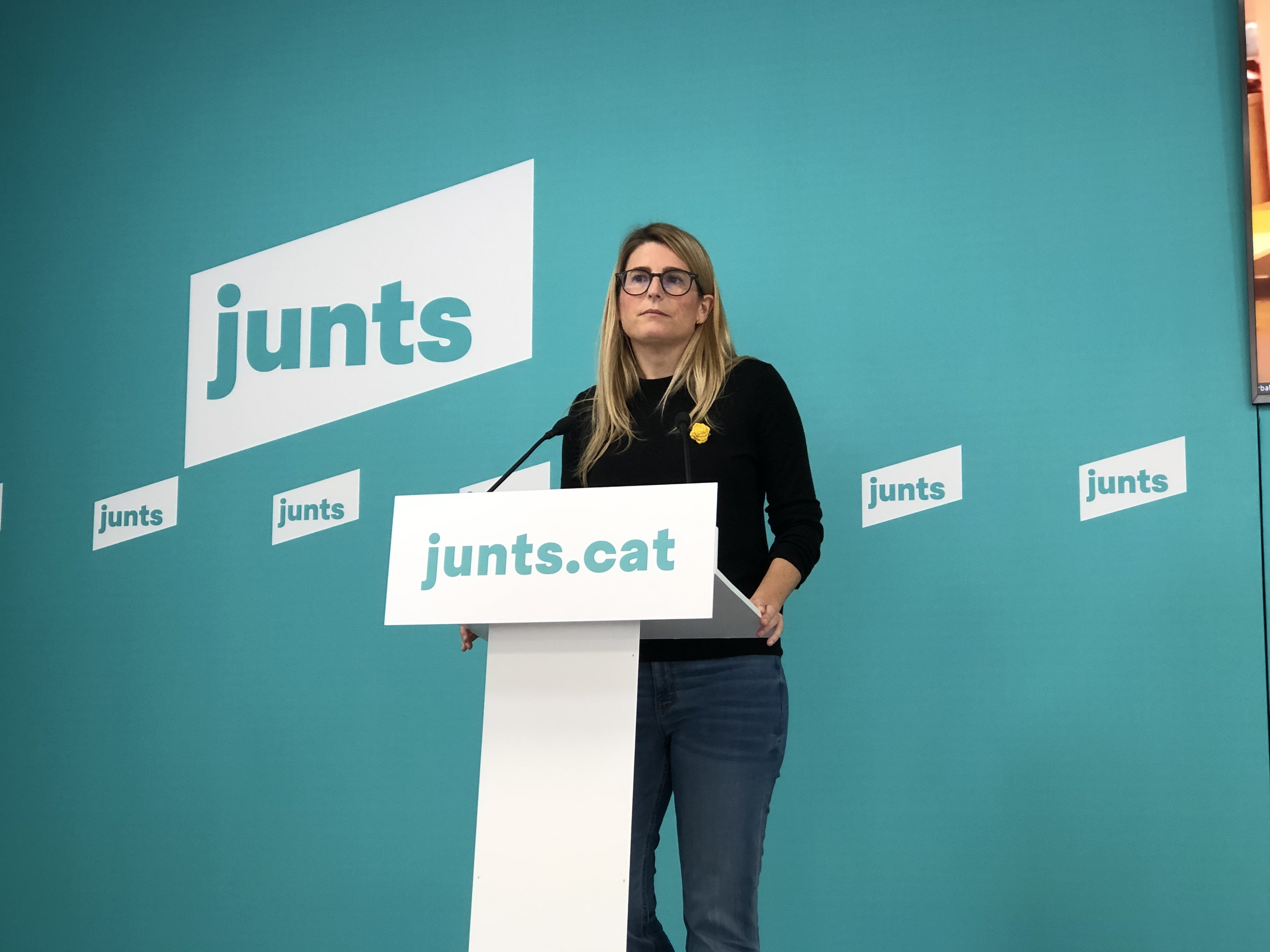 La portavoz de Junts, Elsa Artadi, ha comparecido cuando todavía estaba en marcha la rueda de prensa de ERC en que la republicana Marta Vilalta explicaba que la reunión de los dos partidos del jueves y, en especial, del sábado en la prisión de Lledoners se ha convertido en "un punto de inflexión" que permite que Esquerra "aparque de momento" el escenario de un gobierno en solitario.