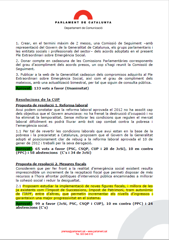 Esta era una de las vías planteadas por la CUP para hacer frente a lo que la resolución consideraba un incremento imprescindible de la recaudación fiscal que permita disponer de más recursos.
