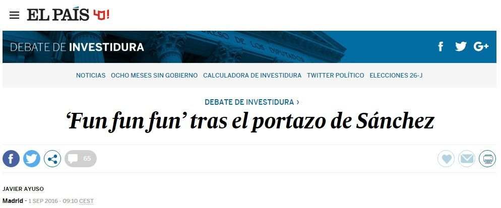 Alguna cosa pasa, ciertamente. Leyendo los diarios madrileños, sus portadas, sus columnistas y sus editoriales, cualquiera pensaría que el candidato a la investidura era el socialista. No (84 veces no). El candidato era (y es) Mariano Rajoy. Los hechos, crudos, son estos: al candidato Rajoy le faltaron seis votos. Los tiene el PNV, por ejemplo, y ningún medio le culpa de destruir España o del apocalipsis patriótico. El ansia de hacer a Rajoy presidente va sin frenos. Con aire de reproche, un digital titula incluso que los valencianos de Compromís se han hecho los sordos a los deseos de patronal valenciana (¡Compromís! ¡La patronal valenciana! ¡La pareja perfecta! ¡Siempre van de la mano!).