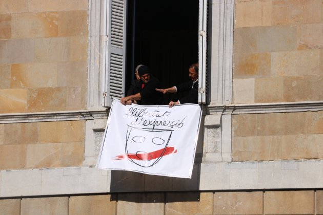 Existe un refrán en catalán que dice 'No vols caldo, doncs dues tasses". Ésta es la máxima en la que se sostiene la respuesta de Quim Torra a la prohibición de la Junta Electoral Central del lazo amarillo en los edificios públicos durante el periodo electoral. Desde este jueves por la mañana, de la fachada del Palau de la Generalitat cuelgan dos nuevas pancartas. La principal es idéntica a la anterior, con el mismo mensaje de 'Llibertat presos polítics i exiliats', pero cambia el lazo amarillo por otro blanco con una franja roja encima. La otra lona, en la ventana de la izquierda, es cuadrada y clama por la libertad de expresión.