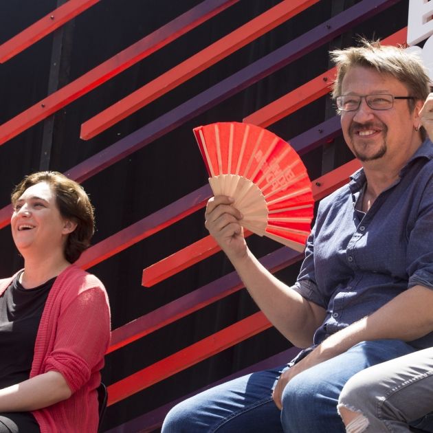 Domènech, que ha entrado al autobús cargado con una bandeja de pastas dulces y saladas, ha seguido el hilo y ha utilizado unas tijeras para recortar unas líneas de cinta americana roja que iba de lado a lado del pasillo. Antes, sin embargo, se le han caído, y después ha entrado en una conversación distendida, donde se han cantado canciones de todo tipo, al ritmo de una guitarra.