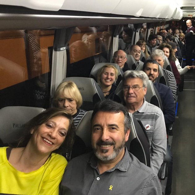 A pesar de la gran cantidad de manifestaciones que se han hecho durante el procés, una buena parte del independentismo ni se cansa ni afloja. Son las seis de la mañana y cinco autobuses cargados con una sesentena de personas en cada uno salen de Badalona y ponen rumbo a Madrid. Quedan 600km por delante, pero dan poca pereza si es para conseguir este objetivo: llenar la capital española de esteladas y simbología amarilla para protestar contra el juicio al procés y para defender la autodeterminación.
