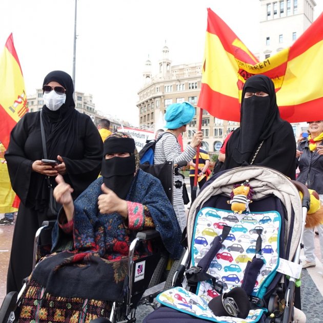 Manifestantes con burka en la manifestación a favor de la unidad de España