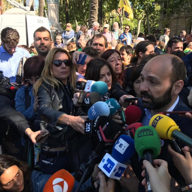 "Estamos aquí para defender la libertad de expresión que Torra ha querido defender, como también defiende Jordi Cuixart y el resto de presos políticos desde el Tribunal Supremo", ha subrayado en declaraciones a los medios ante el TSJC.