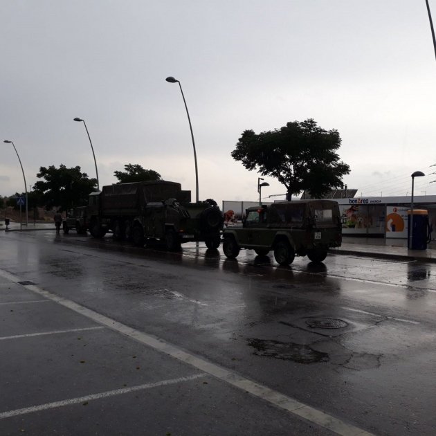 Efectivos militares se han visto a las 14 horas de hoy en la Panadella (Anoia), estacionados en el aparcamiento del restaurante. Entre los efectivos había vehículos todoterreno, vehículos pesados y una veintena de soldados.
