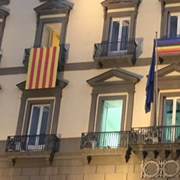 Nápoles cuelga una bandera catalana en solidaridad con Catalunya