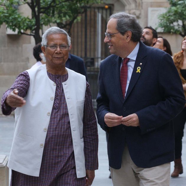 El premio Nobel de Pau Muhammad Yunus ha asegurado que "todo el mundo conoce" la situación política en Catalunya después de reunirse con el president Quim Torra en el Palau de la Generalitat. Yunus, reconocido en el 2006 por sus esfuerzos por incentivar el desarrollo de comunidades con pocos recursos a través de los microcréditos, ha pedido, en declaraciones a la ACN y TV3, una solución pacífica al conflicto político que" permita "seguir juntos".