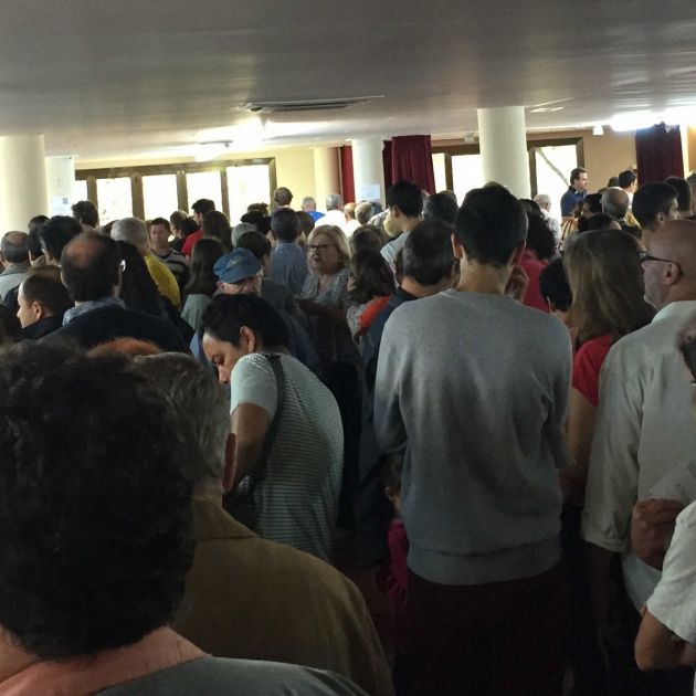 Pintades al Casal Mira-sol, a #Sant Cugat. Aquí ha d votar el candidat de @juntspelsi, Raül Romeva #27SCatRàdio pic.twitter.com/fI1z1KZpSY — carmemontero (@carmemontero) September 27, 2015